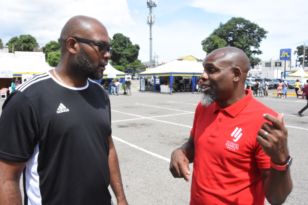 - Dufton โDuffyโ Shepherd (left), host of the JN Bank Open House, was on hand to meet and greet patrons at the event.
