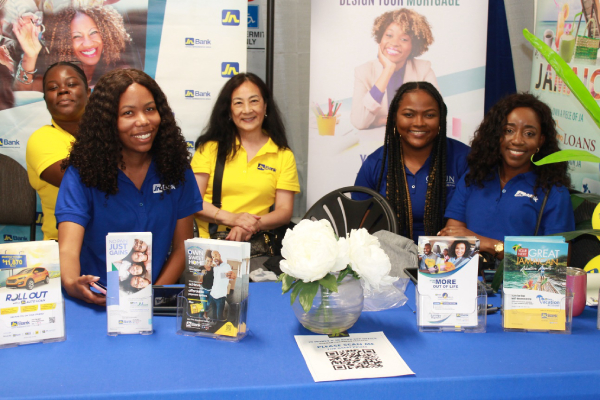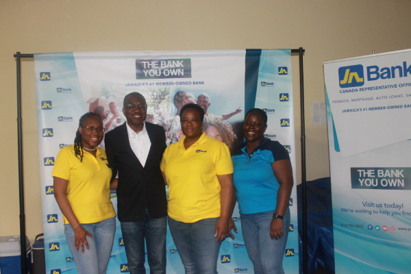 - Lincoln G Downer (second left), Jamaicaโs Consul General to Toronto is flanked by several JN beauties: Alana Marsden (left), Member Service Representative; Simone Thomas (second right), Member Service Representative, and Roxanne Mikely, Volunteer.