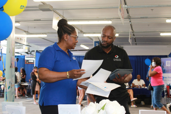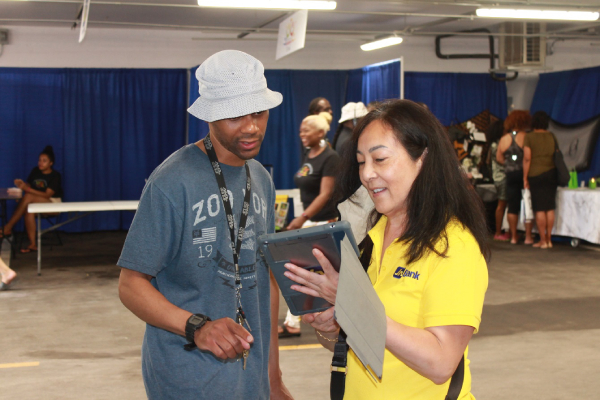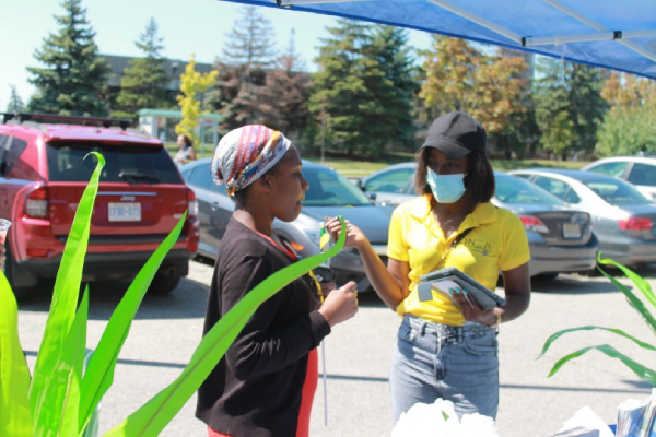 - Terry Wong (right), Senior Member Service Representative, JN Bank Canada Representative Office, records the information of a customer at the Durham Caribbean Festival in July.
