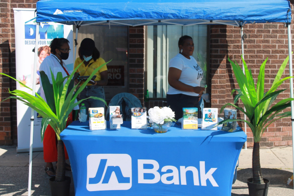 - JN Bank Canada Rep Office booth at the entrance of the Jamaican Canadian Association